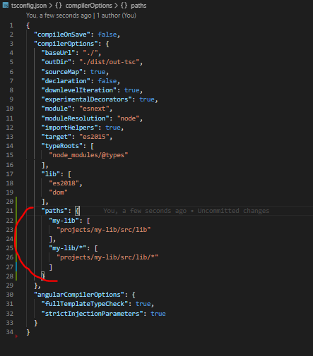 Finally, we need to update generated TS paths for the lib in tsconfig.json file (the root one) to point to the index.ts file created previously: